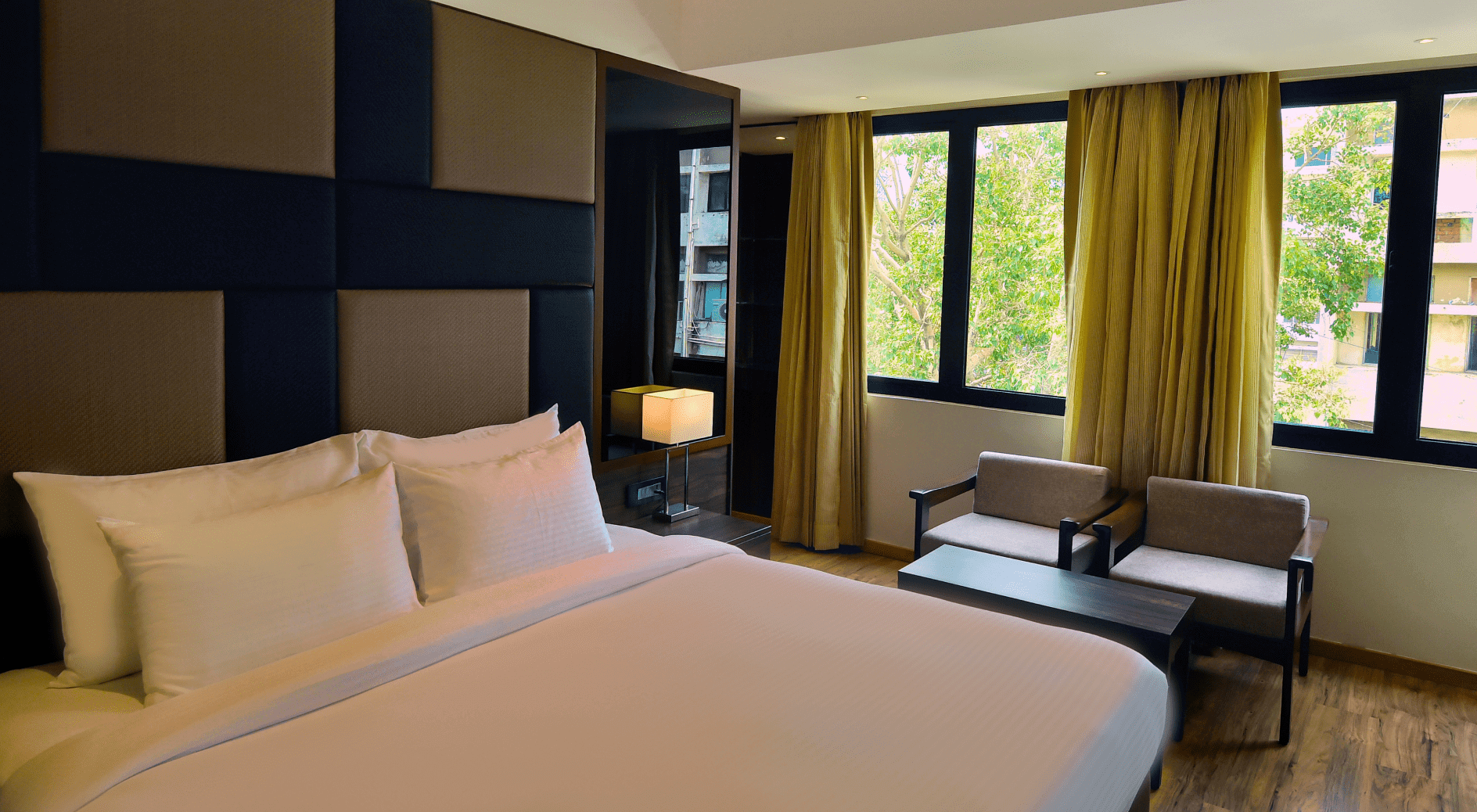 The luxury of space, re-imagined as a quiet and sophisticated haven in our suite room.